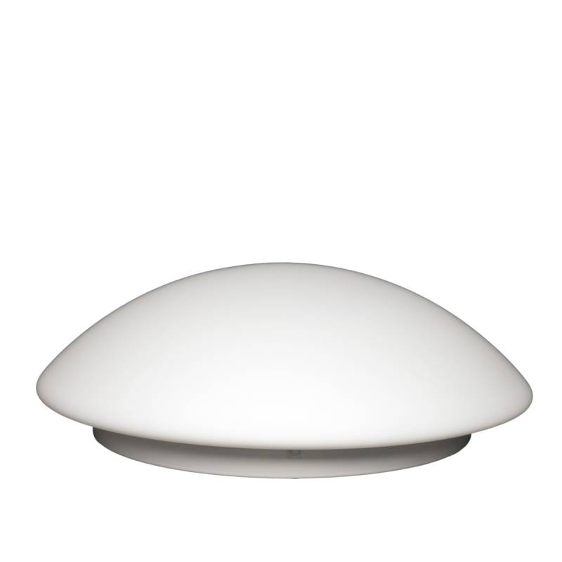 Stínidlo je ručně vyrobeno s velkou pečlivostí z opálového (bílé) matného skla. Stínidlo je doplněno základnou z ocelového plechu s práškovým nástřikem. Je nový, přímo od výrobce.