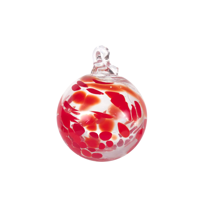 Malá vánoční dekorace - kulička na přívěsek z světlého skla s alabastrem