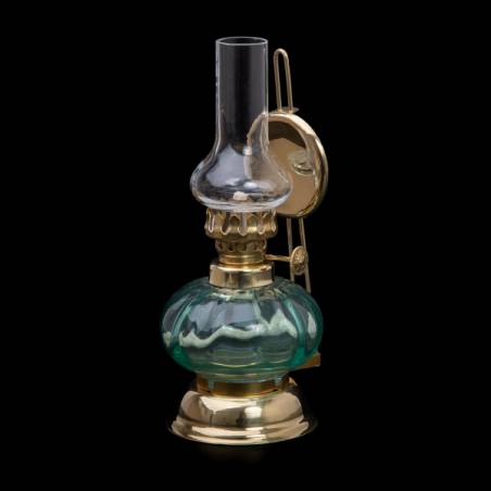 Petrolejová lampa sestávající z mosazného držáku s knotem. Ručně vyráběné stínidla pečlivě vyrobené z vysoce kvalitního čirého skla. Zboží vypadá přesně jako na fotografii. Je zcela nový, přímo od výrobce.