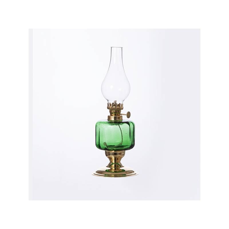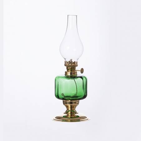 Petrolejová lampa sestávající z mosazného držáku s knotem. Ručně vyráběné stínidla pečlivě vyrobené z vysoce kvalitního čirého skla. Zboží vypadá přesně jako na fotografii. Je zcela nový, přímo od výrobce.