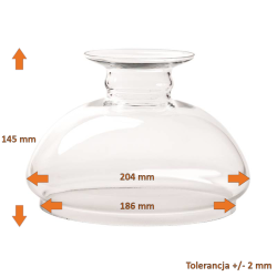 Stínidlo je ručně vyrobeno s velkou pečlivostí z světlého (transparentního) skla. Stínidlo je ideální pro petrolejové lampy nebo pro jejich modernější elektrické verze. *Zboží má vady, např. škrábance, fúze.