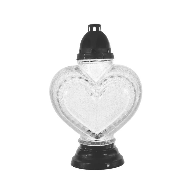 Svíčka na hrob z čirého skla s víčky a podstavci z plastu.
