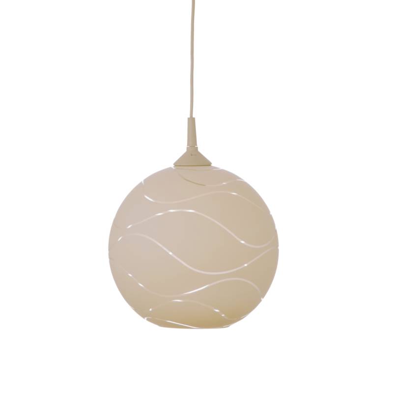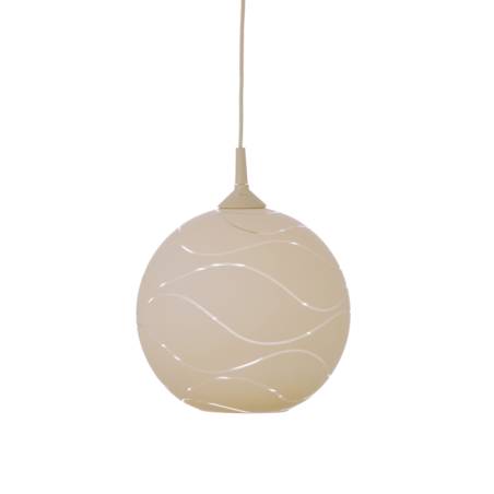 Stínidlo je ručně vyrobené s velkou pečlivostí z kvalitního třívrstvého opálového matného skla (bílé). Popruh viditelný na fotografii je připevněn ke stínidlu. Je nový, přímo od výrobce.