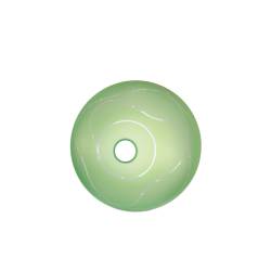 Stínidlo je ručně vyrobeno s velkou pečlivostí z světlého (transparentního) nebo opálového skla malované barvou a zdobené. Popruh viditelný na fotografii je připevněn ke stínidlu. Je nový, přímo od výrobce.