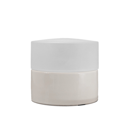 Stínidlo je vyrobeno poloautomatická s velkou pečlivostí z světlého (transparentního) matného skla. Keramický rám viditelný na fotografii je připevněn ke stínidlu. Je nový, přímo od výrobce.