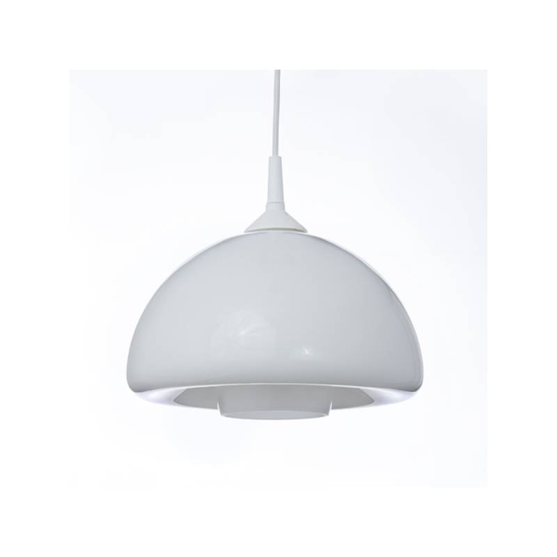 Stínidlo je ručně vyrobené s velkou pečlivostí z kvalitního třívrstvého opálového skla (bílé). Popruh viditelný na fotografii je připevněn ke stínidlu. Je nový, přímo od výrobce.