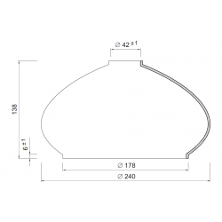 Stínidlo je ručně vyrobeno s velkou pečlivostí z opálového (bílé) matného skla. Stínidlo je doplněno základnou z ocelového plechu s práškovým nástřikem. Je nový, přímo od výrobce.