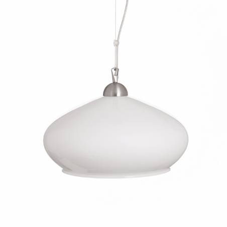 Stínidlo je ručně vyrobeno s velkou pečlivostí z opálového (bílé) matného skla. Stínidlo je doplněno základnou z ocelového plechu s práškovým nástřikem. Je nový, přímo od výrobce.