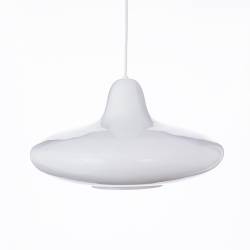 Stínidlo je ručně vyrobeno s velkou pečlivostí z opálového (bílé) matného skla. Stínidlo je doplněno základnou z ocelového plechu s práškovým nástřikem. Je nový, přímo od výrobce.