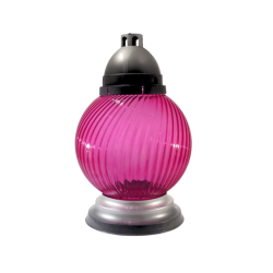 Grablampe aus hellem Glas verziert, Windschutz und Sockel aus Kunststoff.