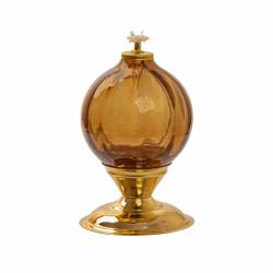 Eine Petroleumlampe bestehend aus einer Messingbefestigung, einem Lampenschirmen (Kamin) und einem Petroleumbehälter mit Docht. Mit äußerster Sorgfalt von Hand gefertigte Lampenschirme aus hochwertigem Klarglass.