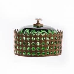 Eine Petroleumlampe bestehend aus einer Messingbefestigung, einem Lampenschirmen (Kamin) und einem Petroleumbehälter mit Docht. Mit äußerster Sorgfalt von Hand gefertigte Lampenschirme aus hochwertigem Klarglass.