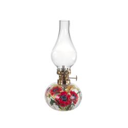 Eine Petroleumlampe bestehend aus einer Messingbefestigung, einem Lampenschirmen (Kamin) und einem Petroleumbehälter mit Docht. Mit äußerster Sorgfalt von Hand gefertigte Lampenschirme aus hochwertigem Klarglass.