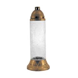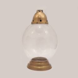 A hand crafted gravelight made of light glass decorated. Base and cup are made of synthetic polimers.