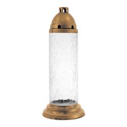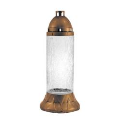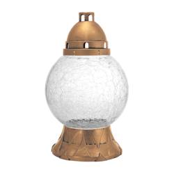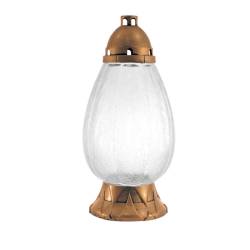 A hand crafted gravelight made of light glass with antico decor (small air bubbles the glass). Base and cup are made of synthetic polimers.