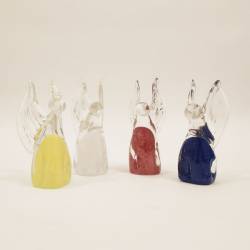 Hand made glass angel figurines, produced from clear glass with addition of coloured alabaster.