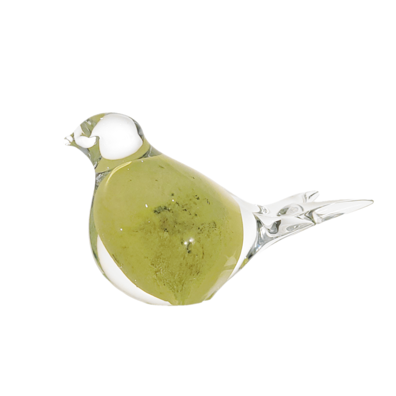 A clear glass figurine handcrafted with special care, decorated with alabaster.
