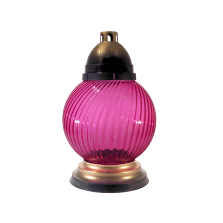 A hand crafted gravelight made of light glass decorated. Base and cup are made of synthetic polimers