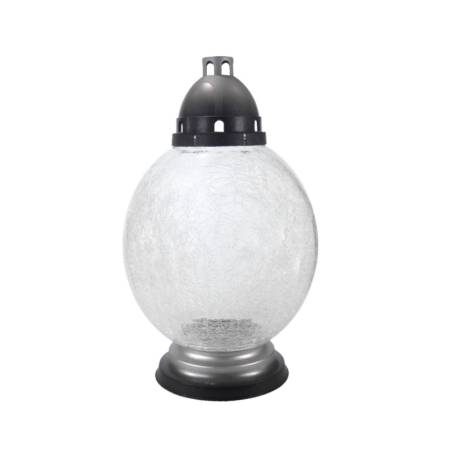 A hand crafted gravelight made of frosted light glass. Base and cup are made of synthetic polimers.