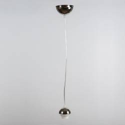 A hanger for sphere lampshades with both sides open, consisting of a steel string, power supply cord and a light fixture. Available in a variety of colours.