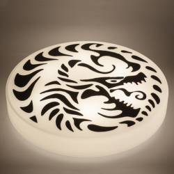 Lampshade made of polycarbonate. Powder coated steel sheet base included in a set. This items look exactly how it is on a photo. Brand new, straight from the manufacturer.