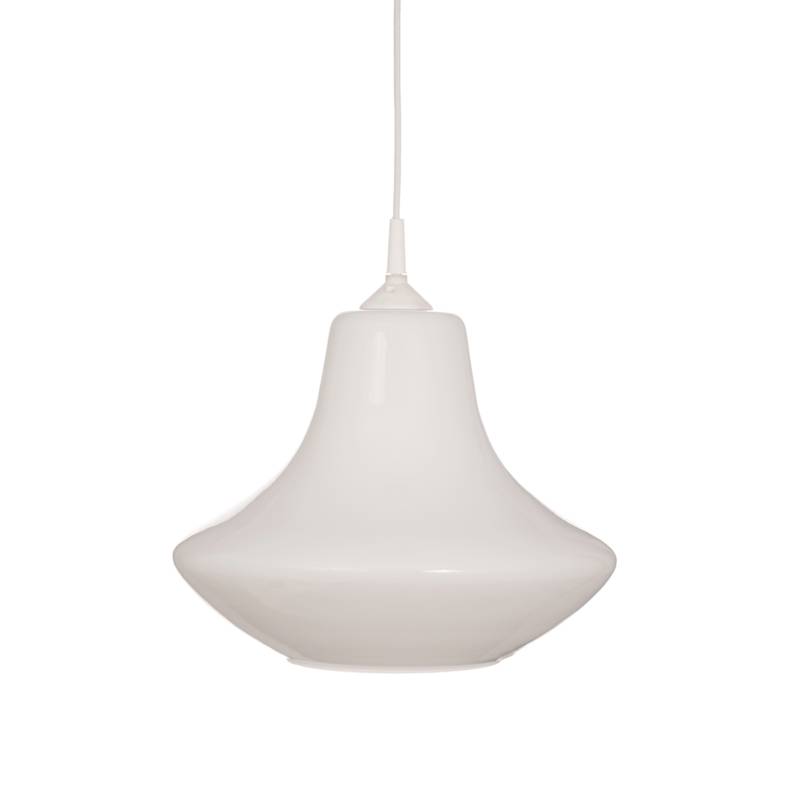 A hand crafted lampshade carefully made of high quality three-layered opal (white) glass, which has ideal parameters of light scattering. A sling with an adjustable length visible on the photograph included in a set.
