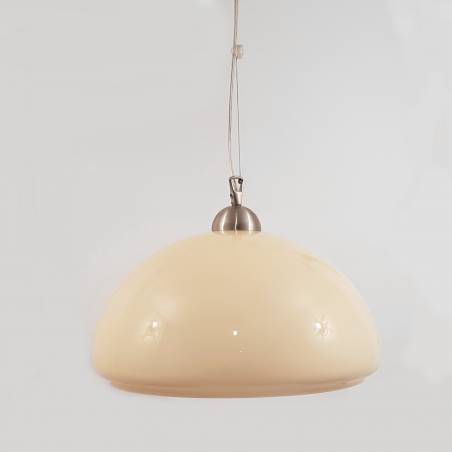 A hand crafted lampshade carefully made of high quality three-layered opal (white) glass, which has ideal parameters of light scattering. A sling with an adjustable length visible on the photograph included in a set.
