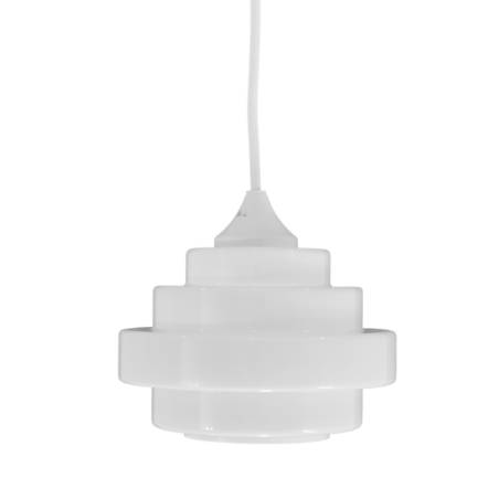 A hand crafted lampshade carefully made of high quality three-layered opal (white) glass, which has ideal parameters of light scattering. A sling with an adjustable length visible on the photograph included in a set.