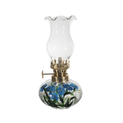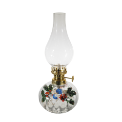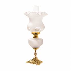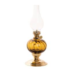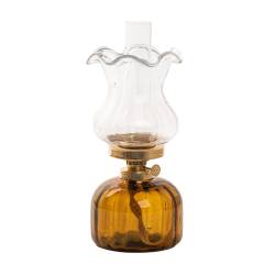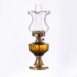 Lampa naftowa składająca się z mosiężnej oprawy oraz pojemnika na naftę z knotem. Klosz wykonany ręcznie z niezwykłą starannością z wysokiej jakości szkła jasnego. Towar wygląda dokładnie tak, jak na zdjęciu. Jest fabrycznie nowy, pochodzi prosto od producenta.