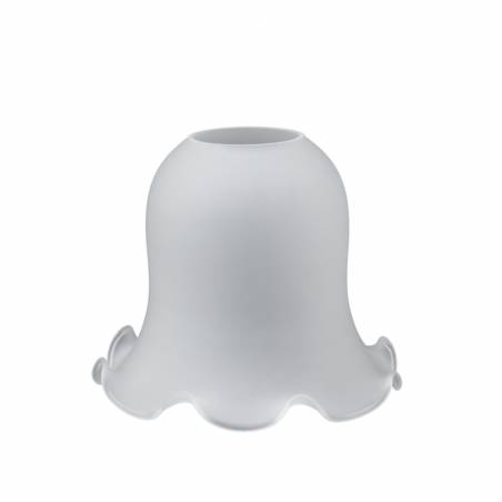 Klosz wykonany ręcznie z trójwarstwowego szkła opalowego (białego). Towar drugiego gatunku, posiada plamę o wielkości 2x4 cm.