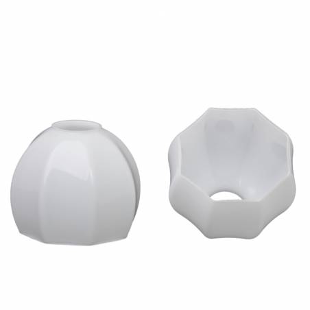 Klosz wykonany ręcznie z trójwarstwowego szkła opalowego (białego). Towar drugiego gatunku, posiada plamę o wielkości 2x4 cm.