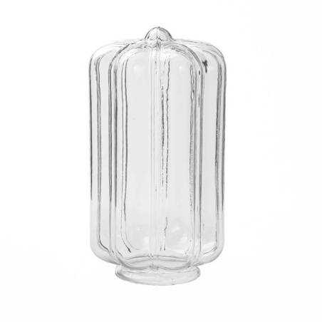 Klosz wykonany ręcznie ze szkła jasnego (przeźroczystego) zdobiony. *Towar drugiego gatunku, posiada wady, np. rysy, wtopienia.