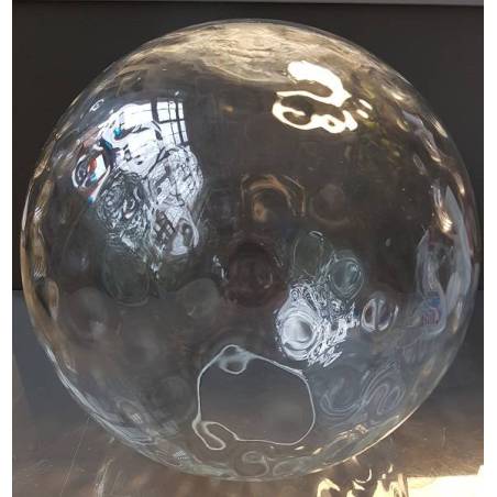Klosz wykonany ręcznie z niezwykłą starannością ze szkła jasnego (przeźroczystego). Do klosza dołączone jest zawiesie o regulowanej długości widoczne na zdjęciu. Jest fabrycznie nowy, pochodzi prosto od producenta.