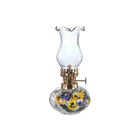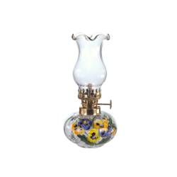Lampa naftowa składająca się z mosiężnej oprawy, kominka oraz pojemnika na naftę z knotem. Klosze wykonane ręcznie z niezwykłą starannością z wysokiej jakości szkła jasnego. Towar jest fabrycznie nowy, pochodzi prosto od producenta.