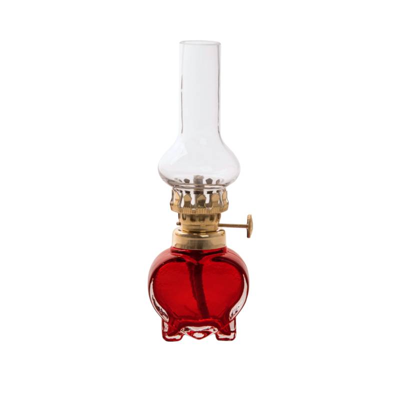Lampa naftowa składająca się z mosiężnej oprawy oraz pojemnika na naftę z knotem. Klosz wykonany ręcznie z niezwykłą starannością z wysokiej jakości szkła jasnego. Towar wygląda dokładnie tak, jak na zdjęciu. Jest fabrycznie nowy, pochodzi prosto od producenta.