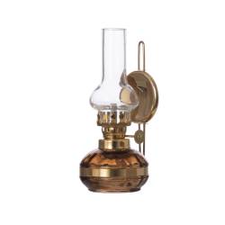Lampa naftowa składająca się z mosiężnej oprawy, kominka oraz pojemnika na naftę z knotem. Klosze wykonane ręcznie z niezwykłą starannością z wysokiej jakości szkła jasnego. Jest fabrycznie nowy, pochodzi prosto od producenta.