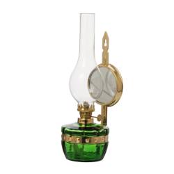 Lampa naftowa składająca się z mosiężnej oprawy, kominka oraz pojemnika na naftę z knotem. Klosze wykonane ręcznie z niezwykłą starannością z wysokiej jakości szkła jasnego. Towar jest fabrycznie nowy, pochodzi prosto od producenta.
