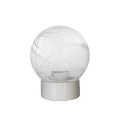 Klosz wykonany ręcznie z niezwykłą starannością z wysokiej jakości szkła jasnego (przeźroczystego), w komplecie z oprawą ceramiczną do kloszy z gwintem. Jest fabrycznie nowy, pochodzi prosto od producenta.