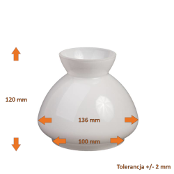 Klosz wykonany ręcznie ze szkła opalowego (mlecznego). Klosz jest idealny do lamp naftowych bądź ich nowocześniejszych elektrycznych wersji.