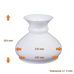 Klosz wykonany ręcznie ze szkła opalowego (mlecznego). Klosz jest idealny do lamp naftowych bądź ich nowocześniejszych elektrycznych wersji.